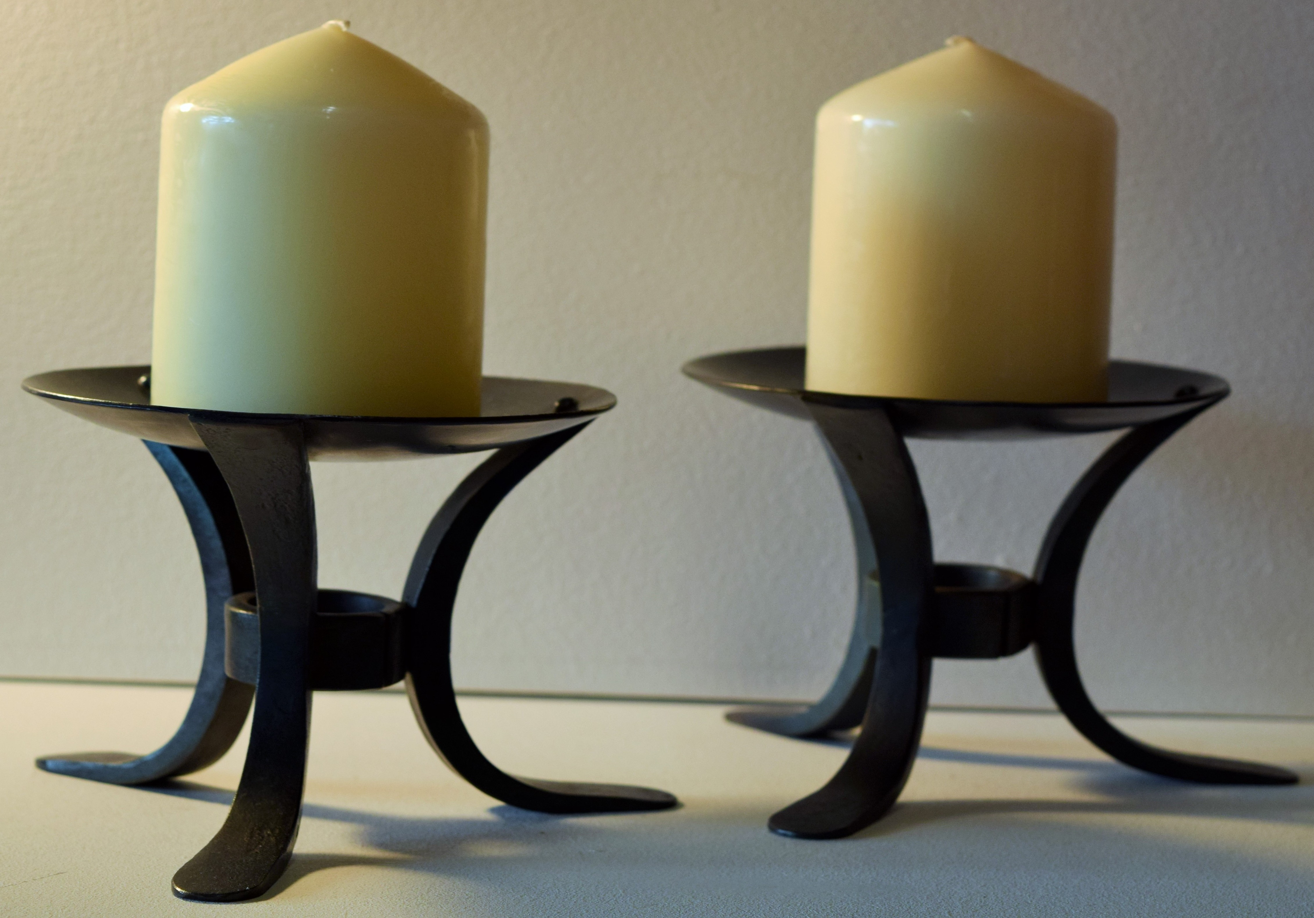 Ideal for the dining table. Hand Forged ,riveted Candle Sconces.Blued and Bees wax finish.