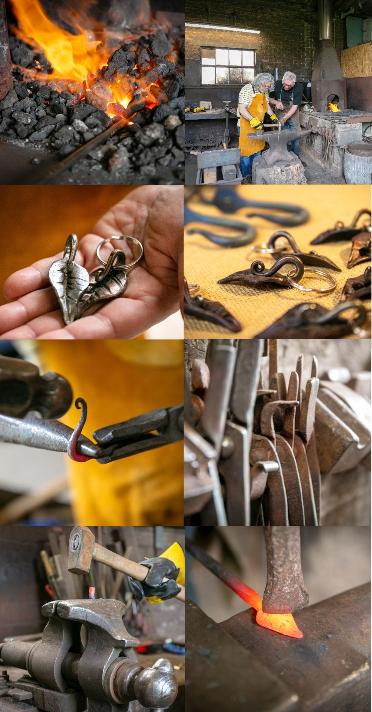 The aim of the taster session is to finish with either a hook and leaf key ring.To achieve this you will learn how to work with tongs to hold the hot metal, and understand the coke fire so that you can judge when the metal will be ready to forge.You will work through various techniques, forging with the hammer, such as Upsetting, Drawing out, Scrolling,Chiselling, and Fullering. All explained at the session.
