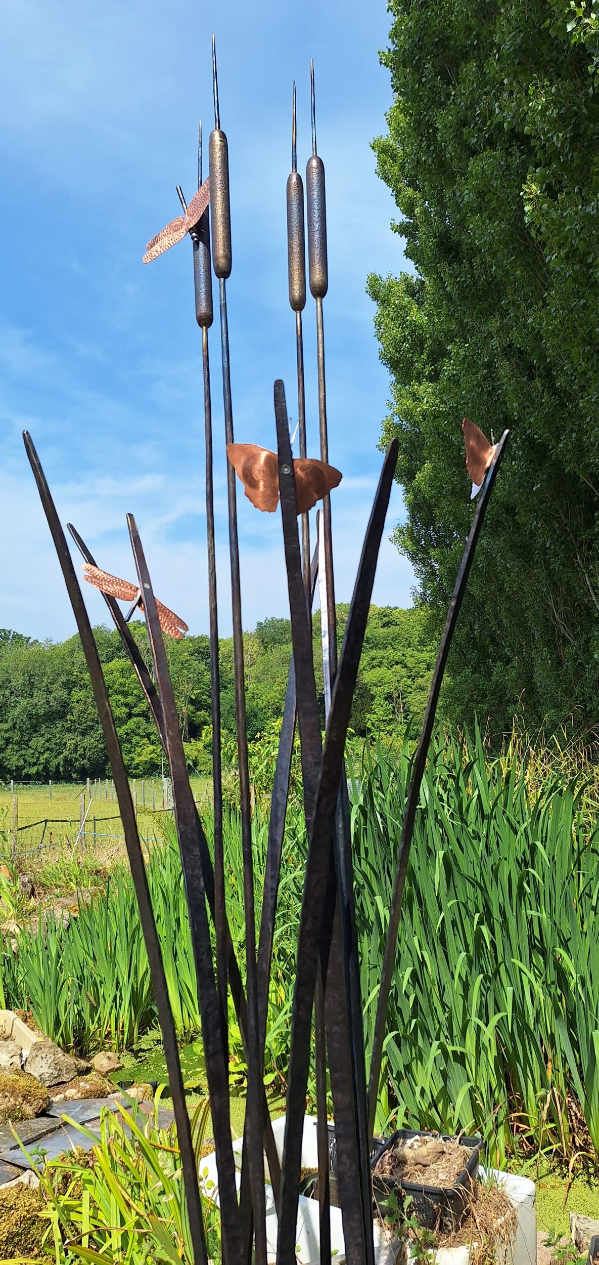Mild Steel and Copper Bull Rushes Garden /Pond Sculpture.Finished with "Renaissance"Micro Crystalline Wax Polish.