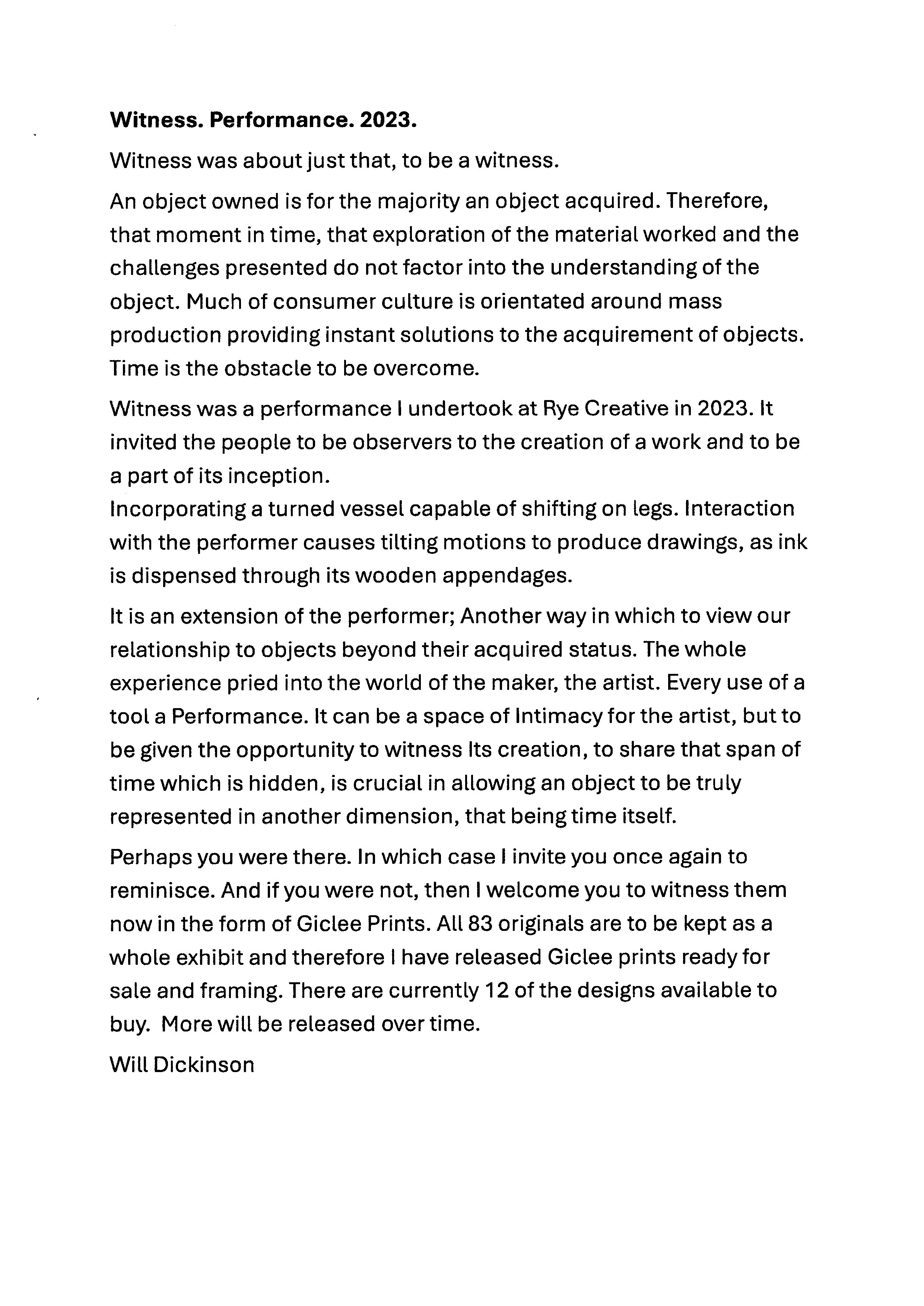 Starting Saturday APRIL 4TH,.... and Open every Saturday 10am -4.30pm. I will be exhibiting selected sculptural works, at Chartham Vineyard alongside Giclee prints from "Witness" a project which was a Performance piece done in Rye in 2023, Oak Gall Ink Drawings on Cotton Caddy Paper.There are 83 of the original drawings in the project, and they need to be kept together in their groups.I am currently working out how I am going to frame all 83!! In the mean time there will be selected Giclee prints available. Open 10.30 am -5pm. Burnt House Farm Station Road, Chartham, Canterbury,Kent CT4 7HU.